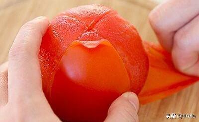 5、番茄去皮,切成小块。